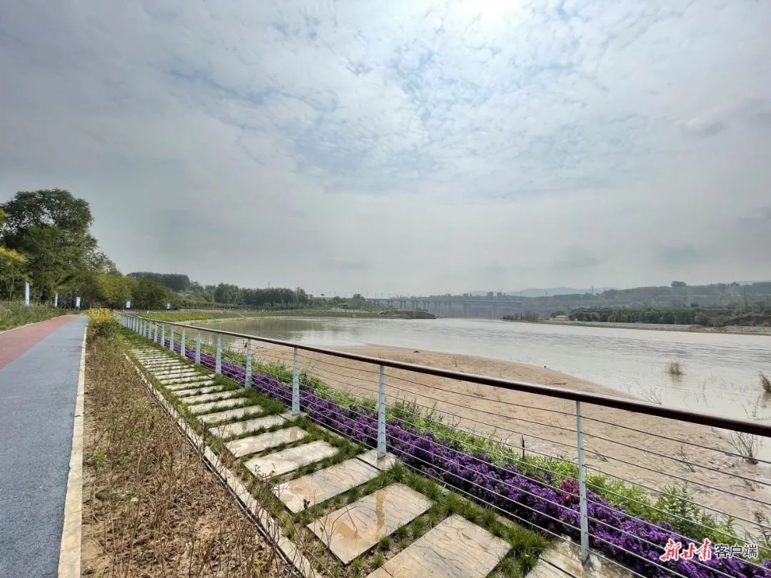 如今,两河交汇段,一条4公里的生态慢行步道绵延纵长,漫步其中,一侧绿树掩映,灌木丛生,鲜花盛开,一侧大河奔腾,滔滔向东。