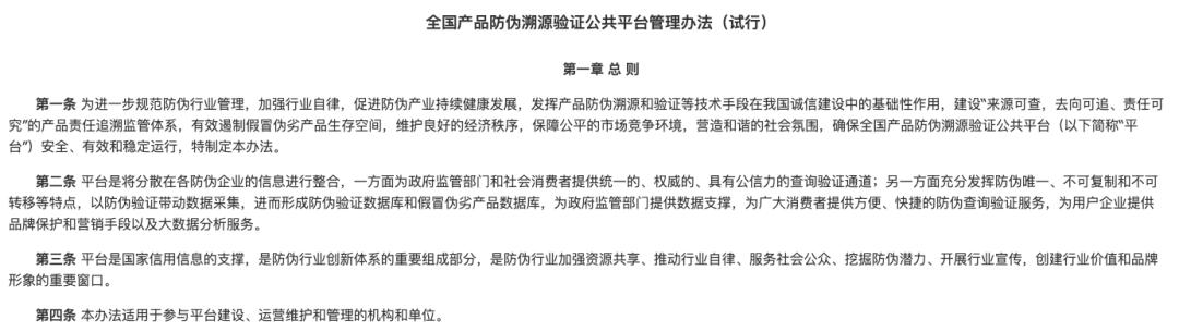 再让之前各个山头的防伪平台全部并进来,后续做的防伪平台也得统统接入,这样就能实现统一的、官方背书的防伪溯源。