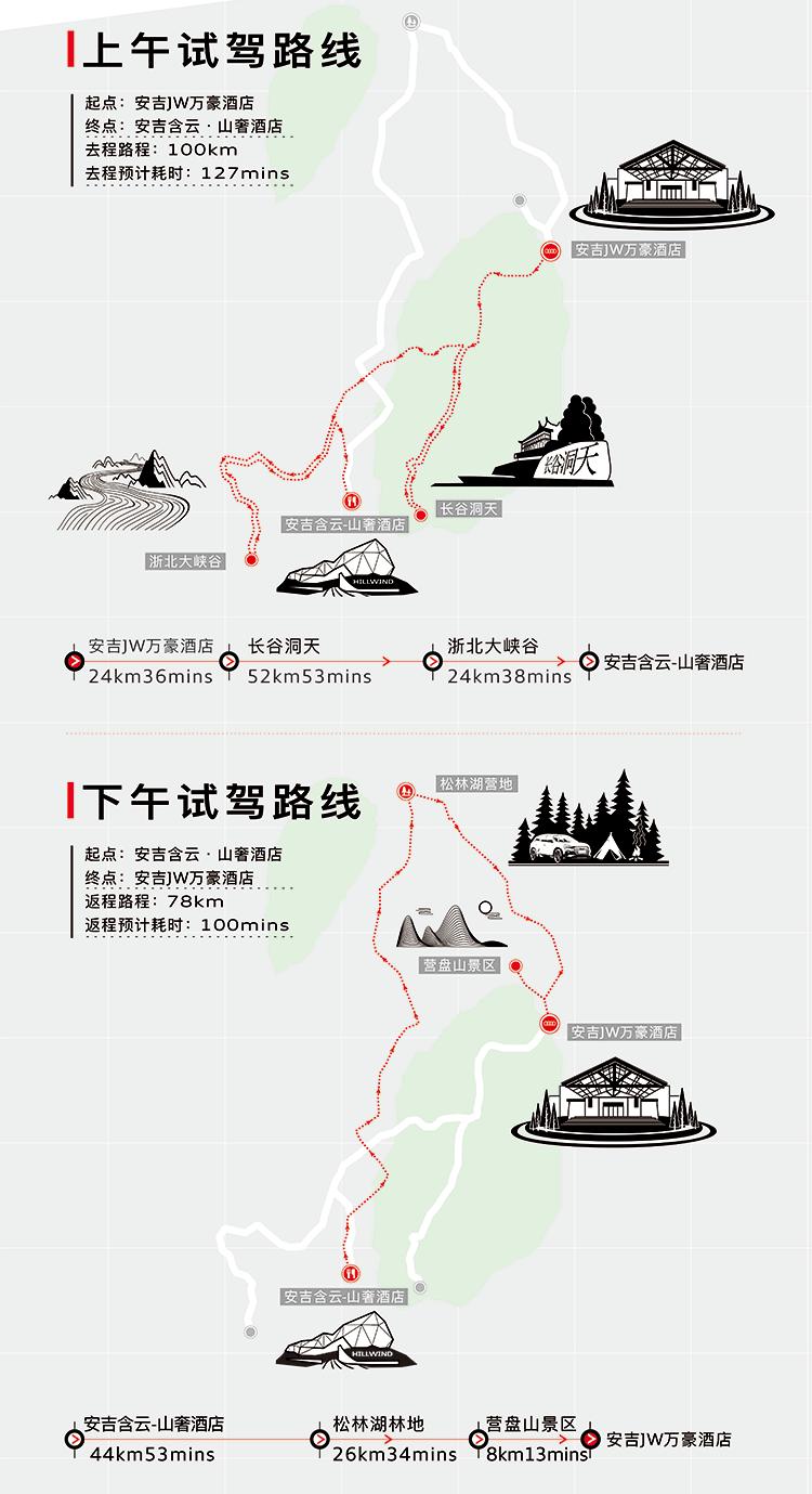 我们这次的试驾路线的设置,位处浙江安吉的山间。早晨从酒店出发,按照设定好的路线走过三段曲折的山路后,再回到酒店。