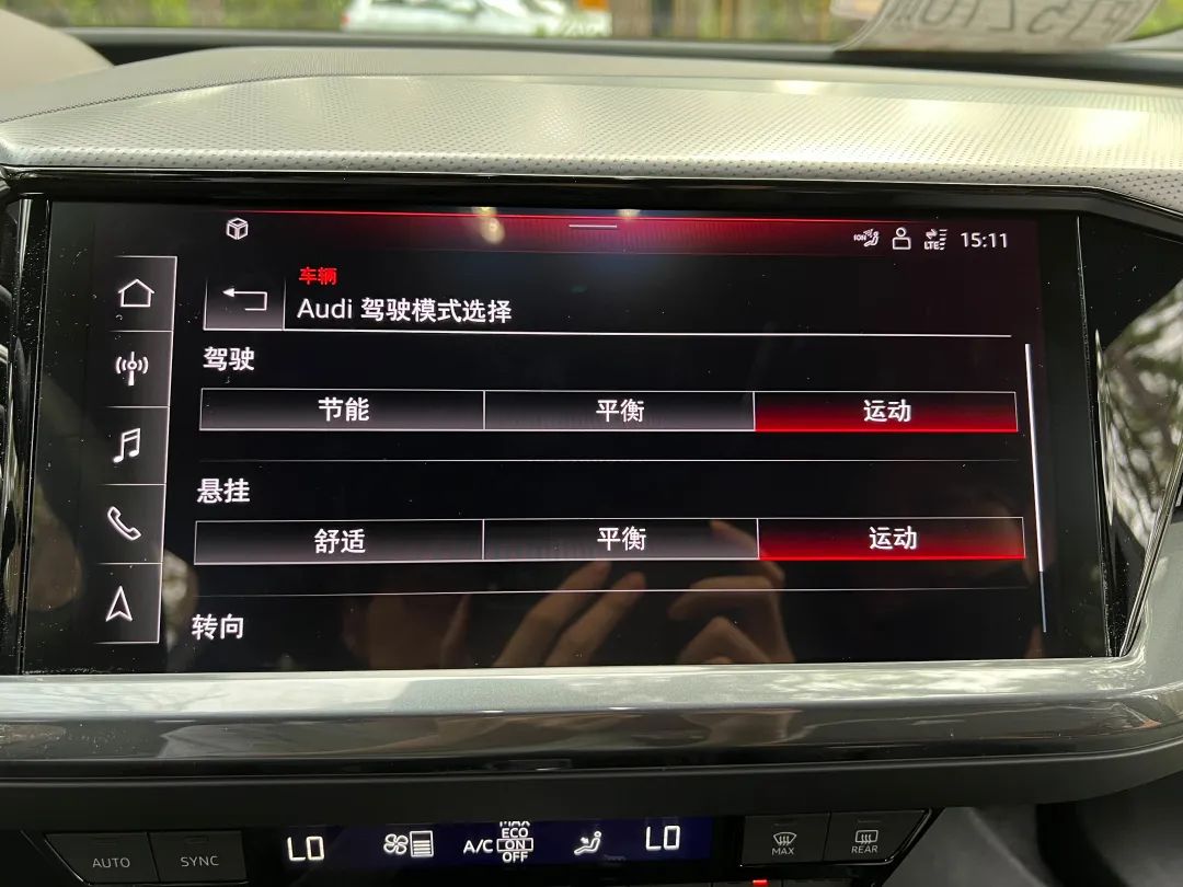 另外,在 50 e-tron 版本上还配备了 DCC 自适应悬挂系统。在驾驶模式中选择舒适模式后,高速状态下会有比较好的稳定性。在铺装状况比较好的柏油路面中高速行驶,它能把细小的路感隔绝的比较干净。但是今天开的是山路,所以还是选择运动模式吧。