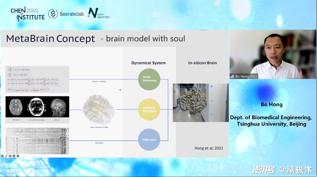 论坛中,清华大学生物医学工程系洪波教授分享了“元脑(Meta Brain)”的新兴概念和他的团队在这个领域上所做的相关工作。“你也许很难想象无数美丽的数学公式能够解释人类大脑的运作机理。”在会中,据洪波教授介绍,元脑的构想是利用脑机接口技术建立大脑的动态数字模型,来帮助提升理解大脑的功能运作,重现生理、病理过程,最终达到应用目的。