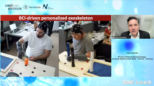 (Soekadar教授展示运动障碍者在接受脑机接口技术应用后恢复活动的案例)