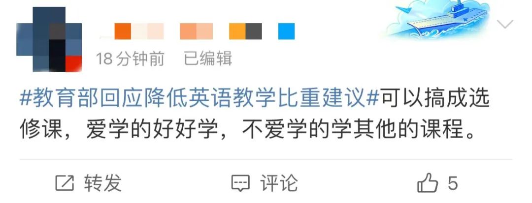 有全国人大代表在十三届全国人大五次会议时提出了关于“降低英语教学比重、在考试中占分比重”的建议。