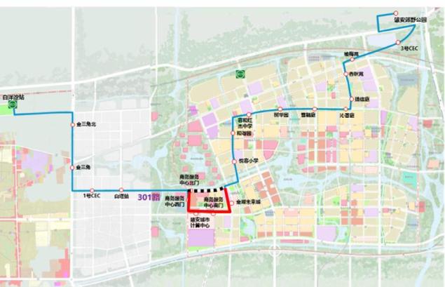 增设站位:商务服务中心西门、雄安城市计算中心(东行)、商务服务中心南门、金湖未来城。