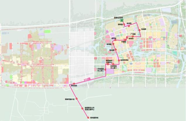 线路由定安公交站出发,经崇文北路、乐民街、金源东路、双文北街、崇文北路、双文街、甘棠路、明朗北街、白塔路、明朗南街、白洋淀大道至阳光国际城。