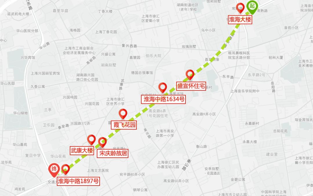 淮海中路辟筑于1900年,初名为“西江路”,后又称“宝昌路”“霞飞路”“泰山路”“林森中路”,解放后被命名为“淮海中路”。淮海中路的历史建筑众多,今天,我们先以淮海大楼为起点,一起逛逛淮海中路的常熟路至华山路段。