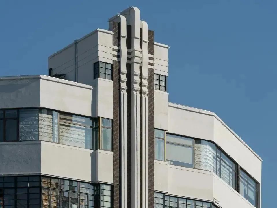 武康大楼,原名诺曼底大楼,钢筋混凝土结构,1924年竣工。建筑立面为法国文艺复兴风格,一二层处理成基座,三层和顶层设环通的阳台式走廊,既可以作为消防通道又替代建筑立面腰带装饰,四至五层立面有部分宽大的外挑阳台。近看精致大气,远看磅礴工整。