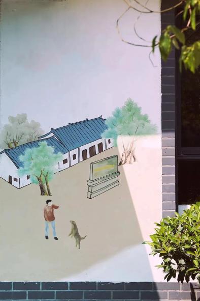 一画一文化,一墙一风景。走进万亩良田旁的老房子给它们画上了“彩妆”。墙绘作品色彩丰富、内容鲜活,描绘着新“小昆山十景”等元素,呈现出人们对美丽乡村的期望与对美好生活的向往。