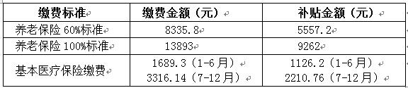 补贴标准:按实际缴纳社会保险费(包括基本养老保险费和基本医疗保险费)的2/3给予补贴。