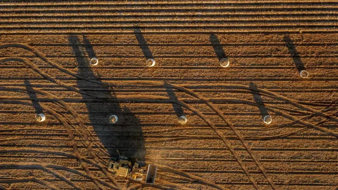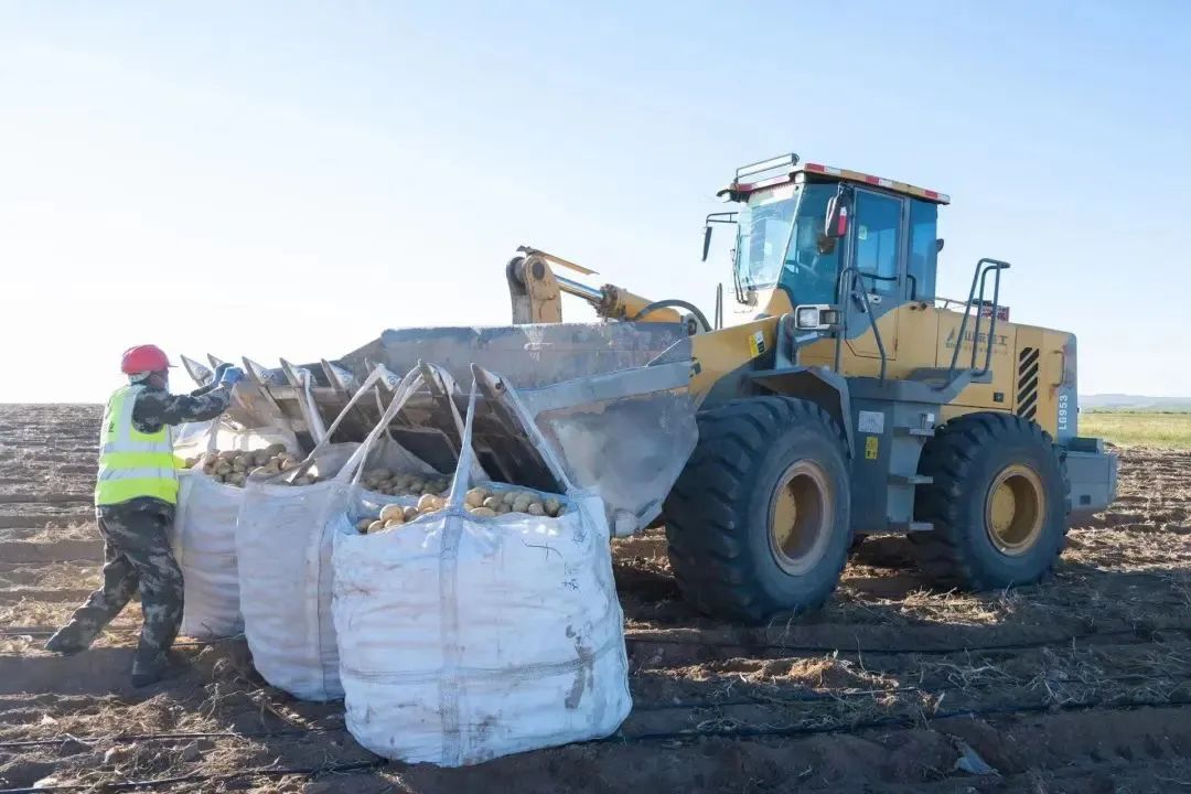 初秋时节,“中国薯都”乌兰察布迎来丰收。来到察右中旗土城子乡诚丰薯业公司的种植基地,目之所及一片“薯山薯海”:马铃薯收获机在松软的土地上来回穿梭,将一串串沾着土、连着根的“金豆豆”翻至地表,工人们忙碌着采拾、装袋,地垄间到处是鼓鼓囊囊的纤维袋,不远处是整装待发的货车,田边的柏油路上也有货车不时经过……每年8月中旬到10月上旬,这一派繁忙景象就在乌兰察布绵延250公里的马铃薯种植带持续上演。