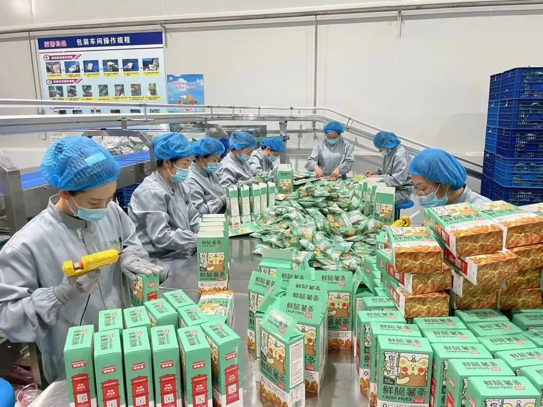 “和高温油炸相比,低温油浴薯条含油量低、致癌物少,也能保留更多营养成分和风味物质。”公司总经理卢文兵介绍道:“我们生产的薯条有合作品牌‘薯小皇’和自主品牌‘嘟嘟薯’,目前正在布局抖音、天猫等线上平台,努力打开全国市场。”