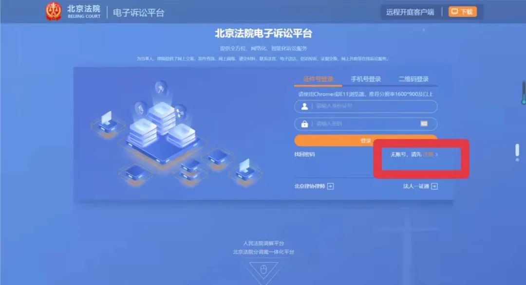 如果您是初次使用本平台,您可以登陆北京法院电子诉讼平台网站(http://sspt.bjcourt.gov.cn),点击注册账号,进行实名认证。