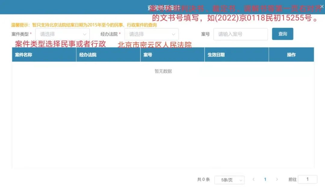 特别提示:北京法院结案日期为2015年至今的民事、行政案件,可以查询关联案件。