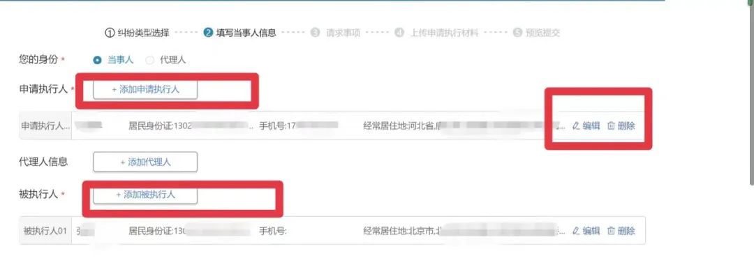 执行人:当事人类型为自然人:填写证件类型、姓名、证件号码、性别、年龄、户籍地、民族、常用地址、电子邮箱、送达地址。