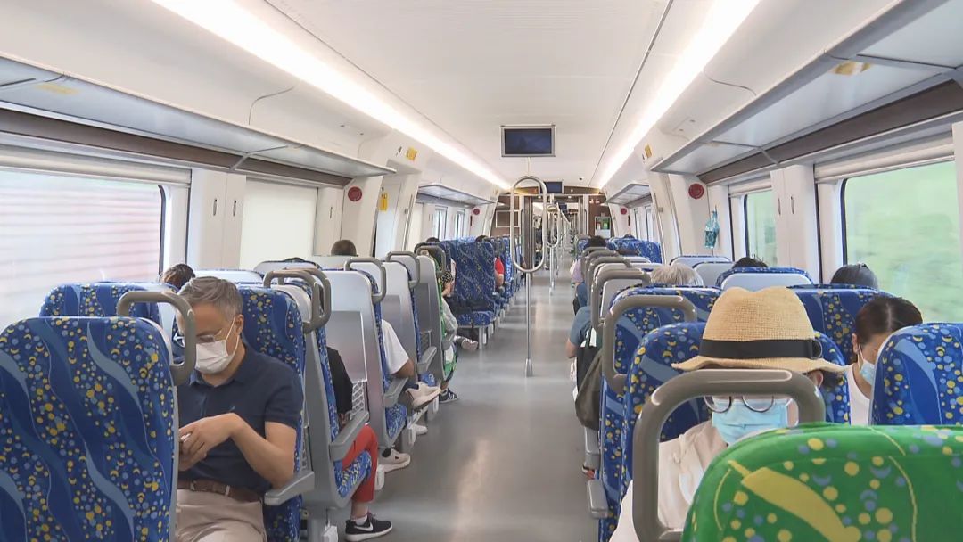 金山铁路全长56公里,最高时速160公里,从金山卫站至上海南站,乘坐直达列车,只需32分钟。当然,除了速度快,舒适的乘车环境以及密集的列车班次也让它成为了不少乘客的“出行首选”。市民黄先生表示,现在更换的车型相对以前来说更加宽敞,虽然座位少了点、站立的人多了,但是班次能从早上6点一直到晚上9点多,时间跨度变长了,更能满足市民不同的通勤需求。