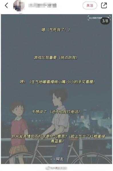 来看看网友的各种例句,比如“哪有啊(害羞的捂小脸脸跺脚脚)”“唔……早上好(微微沙哑的嗓音,两只手蜷曲成小粉拳状揉眼睛)”“抱抱(张开双臂,紧紧扯入怀中)”“在吗 (28℃的大晴天在图书馆被热晕过去醒来不知道发生了什么事)”等等,熟悉这种表达方式的网友秒懂含义,不明白的感觉莫名其妙。