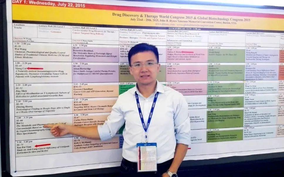 2015年,李锐在波士顿参加“药物发现与治疗”世界大会,在中医药分会作姜黄研究的学术报告