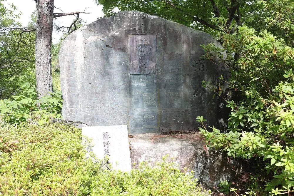 位于福井市足羽山顶上的藤野先生纪念碑,上面刻着藤野先生头像和“惜别”二字。王子江摄(新华每日电讯)