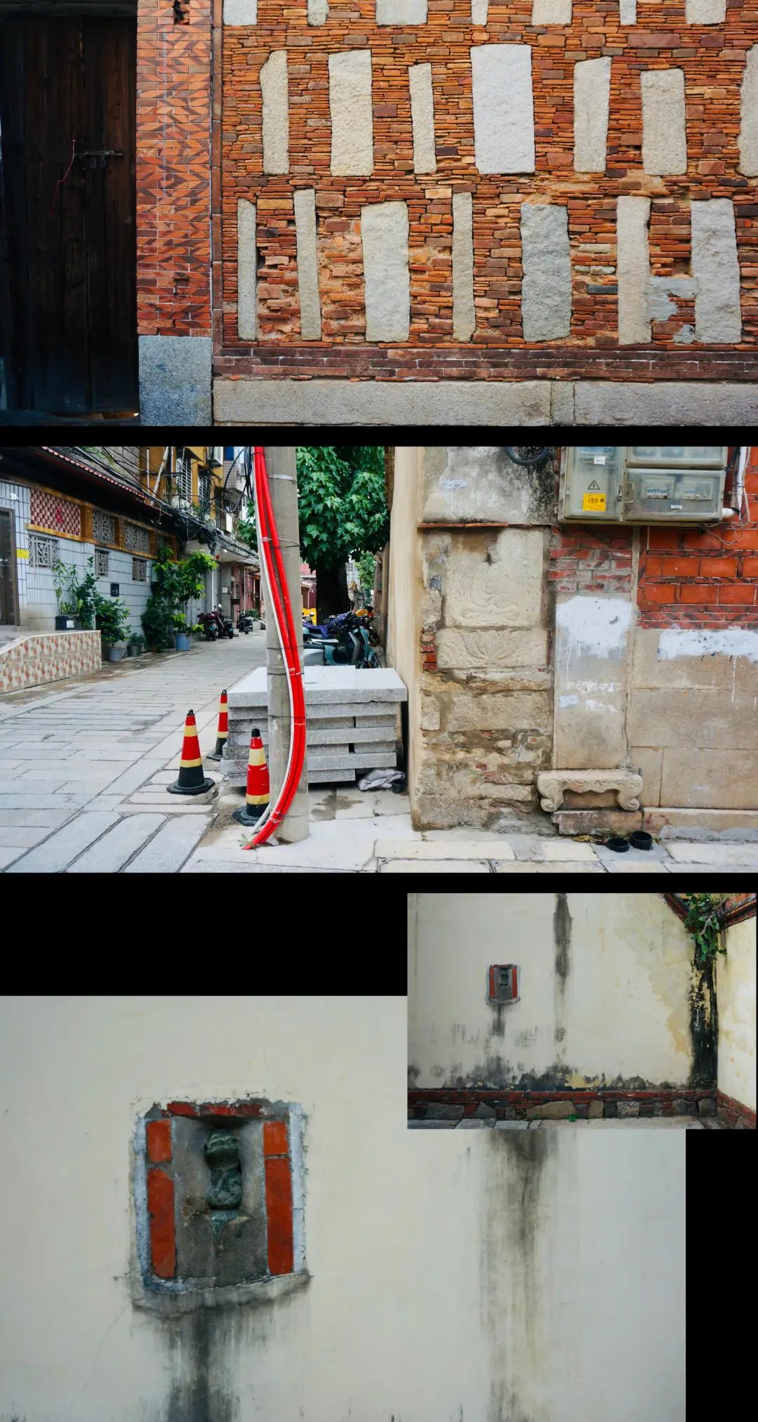 因此如果说西街只是其中一个面向,那么有关泉州更丰富的表达,其实就藏在鲤城区的每一条巷弄里。谁家修了一面精致的出砖入石墙,谁家把当年拆毁庙宇的观音菩萨藏在了自己宅院的墙面里,谁家又给古老的石敢当砌了一个小龛让它藏身期间。