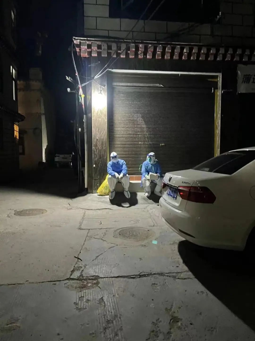 8月12日凌晨四点,次仁拉姆下沉至嘎玛贡桑二号网格,配合社区和公安干警负责卡点的人员出入管控工作,下沉的头三天她就和队友连续值了三天夜班。
