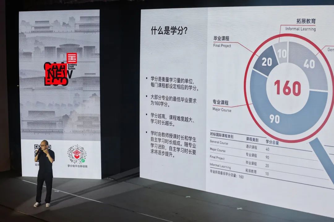 中国美术学院“完全学分制”导学宣讲会在象山校区举行,教务处处长陈正达教授为本年度实施学分制的1049名本科生讲解学分制教学模式下的学习路径。全新的学习模式、全新的管理系统、全新的学习体验、丰富的课程池、国际化的成绩单……他们将率先体验中国美术学院完全学分制改革带来的诸多新变化。