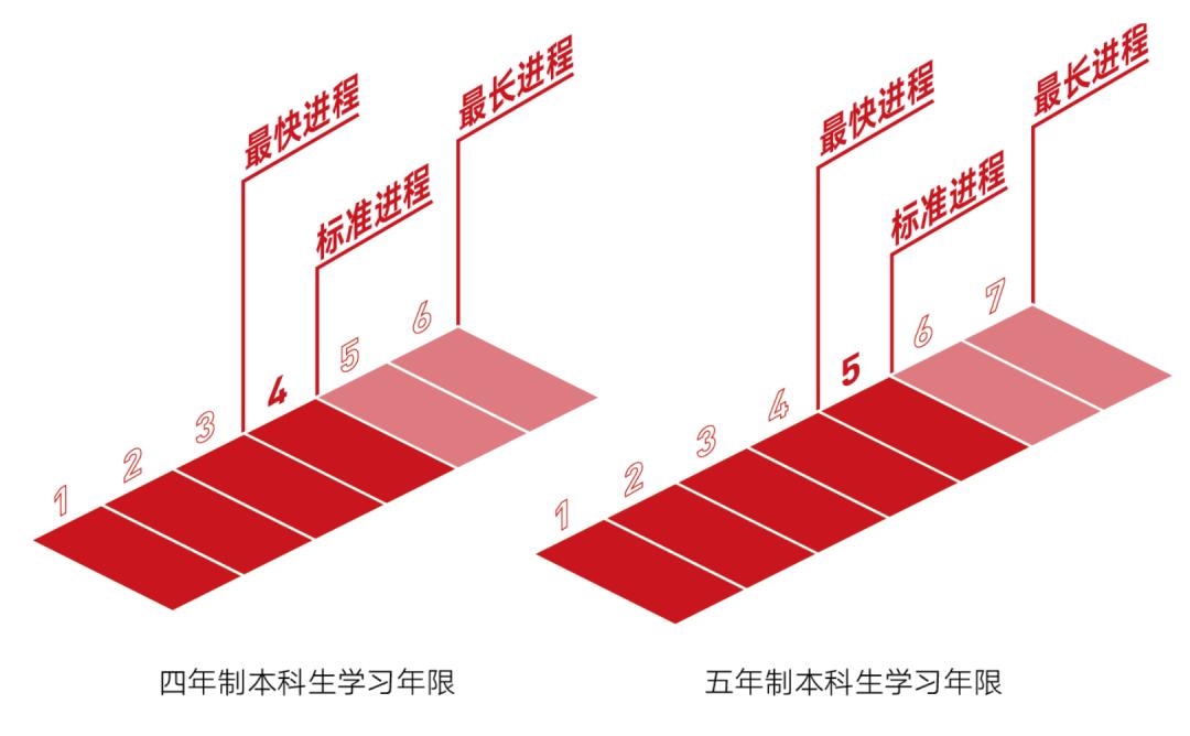 弹性学制为优秀同学提供了更快完成学业的通道,也为转专业、辅修等同学提供延迟毕业的可能性。