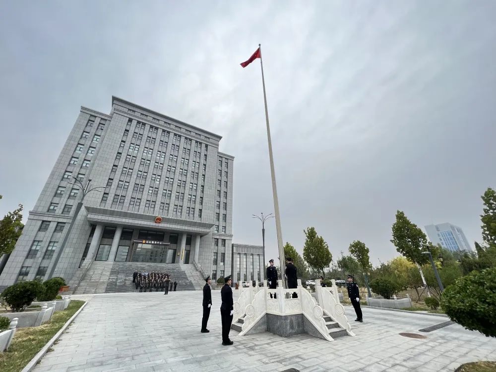 7点30分,升国旗仪式准时开始。国旗护卫队迈着铿锵有力的步伐将国旗护送到升旗台前,全院干警精神饱满,庄严肃立,“起来,不愿做奴隶的人们,把我们的血肉,筑成我们新的长城……”在雄壮激昂的国歌声中,鲜艳的五星红旗冉冉升起,全体人员满怀崇敬之情,面向国旗行注目礼,共同祝愿伟大祖国更加繁荣昌盛。