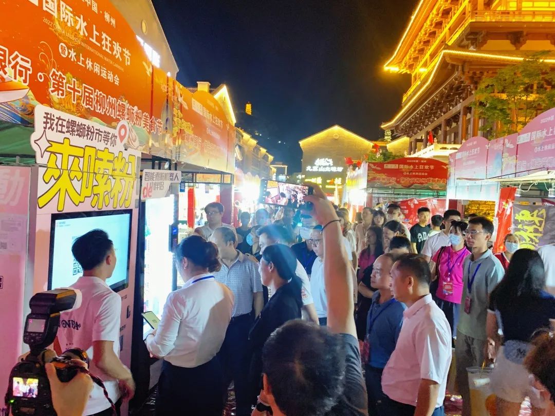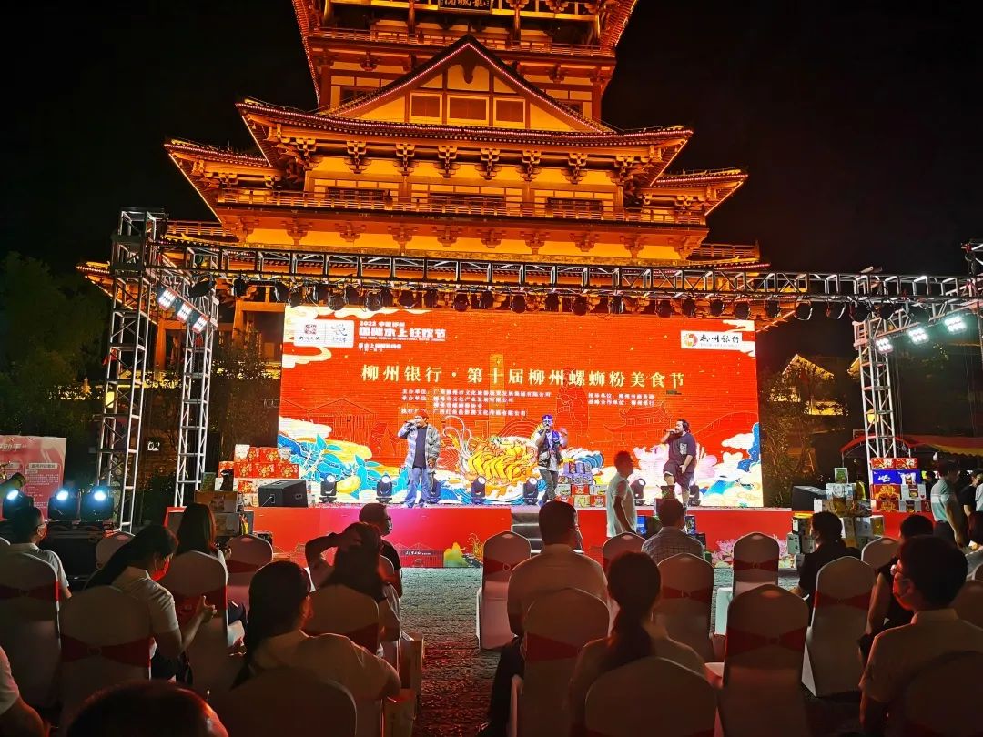 美食节现场灯光璀璨、十分热闹,不少市民游客闻着螺蛳粉的香味就来了,都迫不及待地要品尝一碗酸辣舒爽的柳州螺蛳粉。