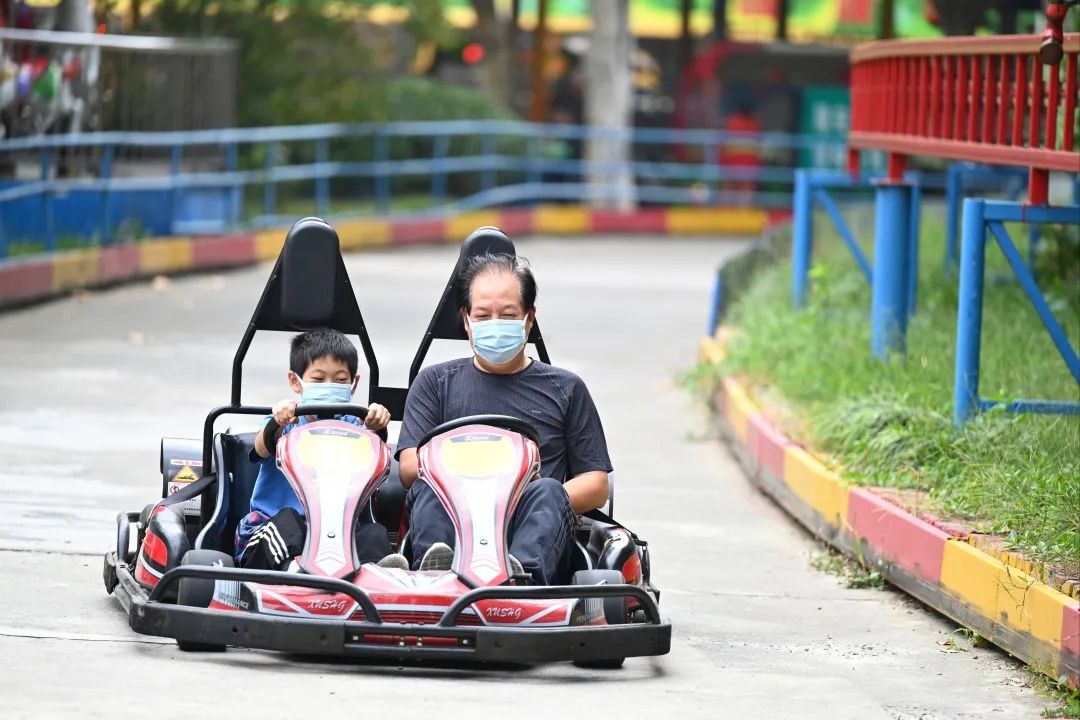 趁着假期,市民带着孩子在楚秀园体验各类娱乐项目。