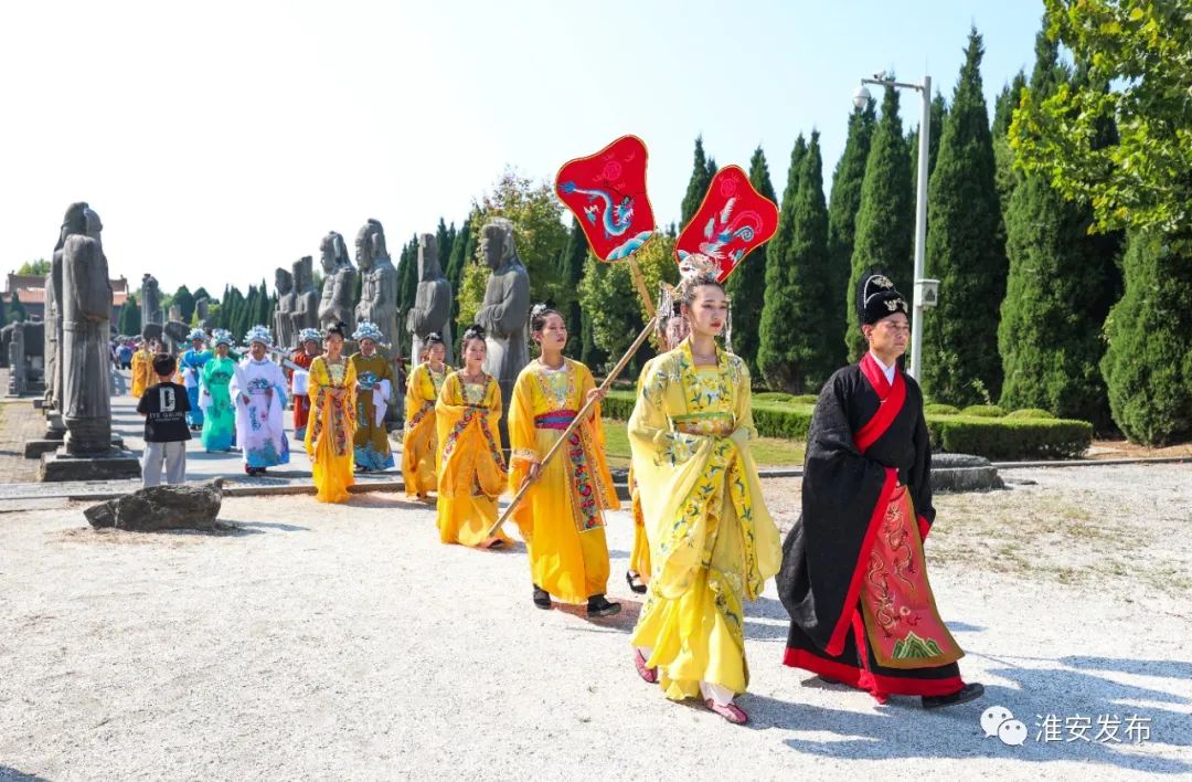 明祖陵景区,汉服展示让游客感受华夏传统服饰文化之美。