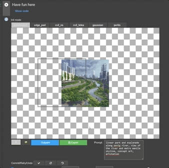 另外,在延伸上面那张“城市风光照”时,手动输入“沿着经过的河流的线性公园和河滨公园,河流和马尼拉地铁天际线的景色 ”。