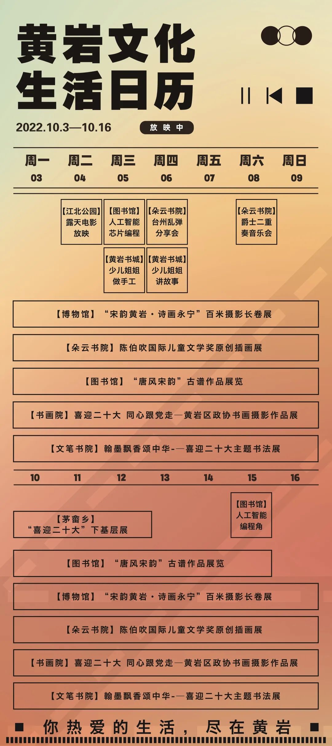 原标题:《假期怎么玩?10月黄岩文化活动日历来啦》