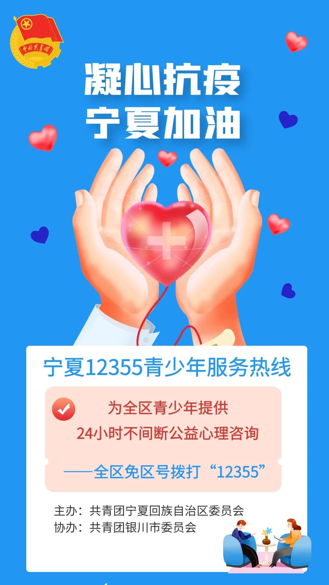 ☞宁夏:为做好疫情防控形势下青少年的心理疏导工作,引导大家消除恐慌、焦虑情绪,以积极健康的心态战胜疫情,团宁夏区委、团银川市委充分发挥宁夏12355青少年服务台作用,依托专业力量,为全区青少年提供心理咨询、法律援助、志愿服务等一站式服务。(查看更多)