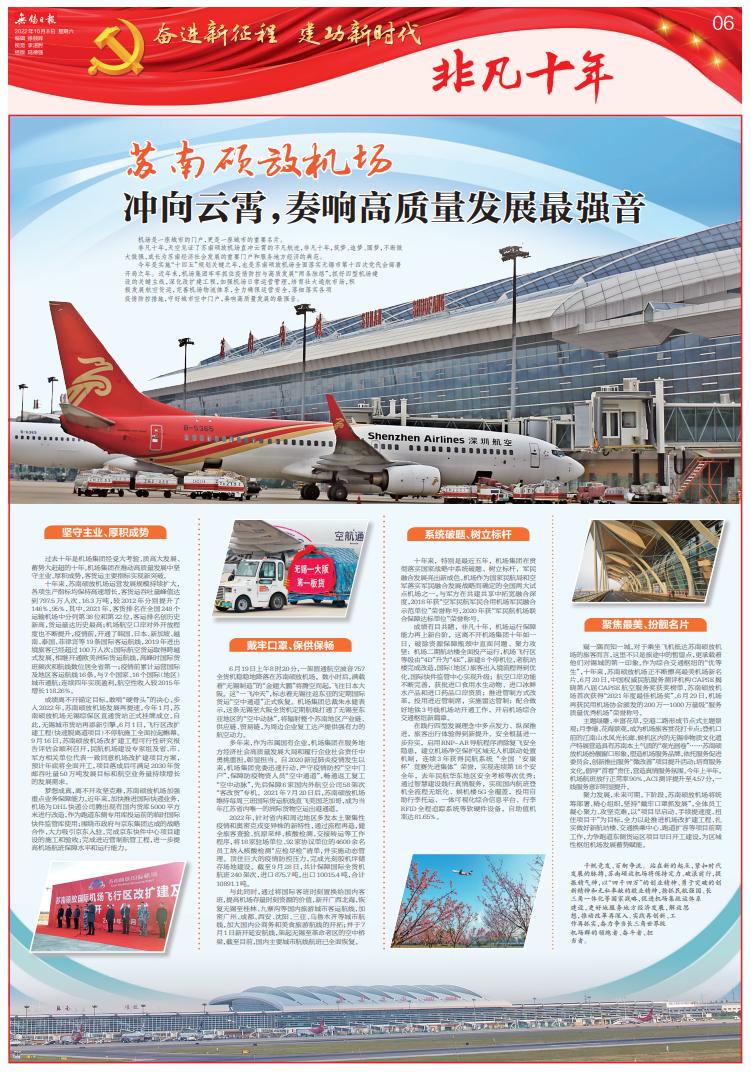 过去十年是机场集团经受大考验、质高大发展、蓄势大赶超的十年。机场集团在推动高质量发展中坚守主业、厚积成势,客货运主要指标实现新突破。