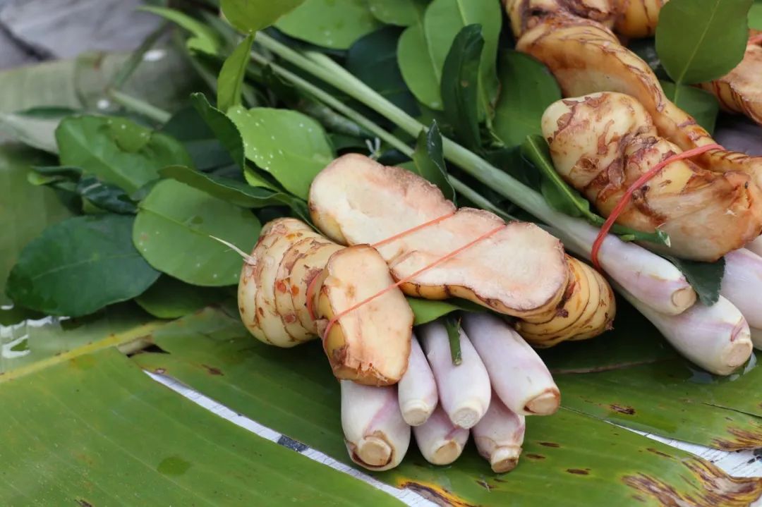 刚才在说到咖喱的时候,我特地强调了黄色的咖喱,因为泰国菜里也有咖喱,但并不都是黄色的,也有红的绿的,跟姜黄的关系就不那么密切了。不过泰国菜中,却有另外一种不能缺席的“姜”,那就是高良姜,也叫南姜。