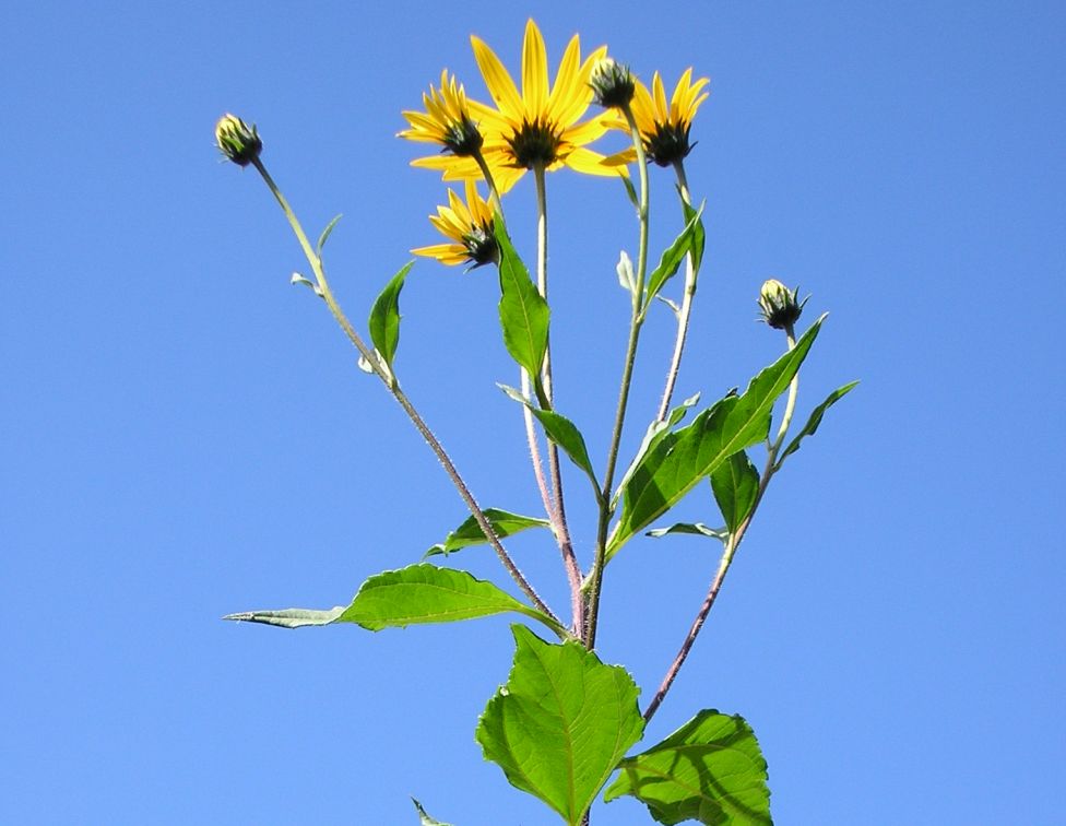 洋姜的大名叫菊芋,其实是菊科向日葵属的植物,地上部分长得和向日葵特别像,就是花序小好几圈。