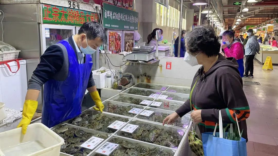 水产摊主告诉记者,现在上海市场上的螃蟹都来自江苏太湖地区,由于节后螃蟹大量上市,因此螃蟹价格普遍都有近10元每只的降幅,而吃螃蟹最好的时间预计在本月底。“今年大闸蟹的收成较好,但因为天气原因,个头大的蟹少,一只螃蟹的价格比中秋掉了差不多十块钱。现在吃母蟹的人多一点,等西北风吹一吹,到时候公蟹就多了,现在的公蟹膏还没长出来。之后成熟的蟹多了,未来的价格还是会降低。”摊主表示。