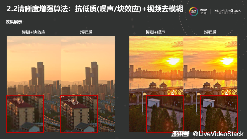 此外快手清晰度增强算法还具备低质视频针对性算法版本,这个算法版本专门针对性算子进行处理,能够在去模糊处理同时具备抗低质效果。对于噪声/块效应进行去除修复并增强清晰度纹理,这样有效避免增强清晰度纹理的同时放大低质(噪声/块效应),从而更好地服务大量实际应用场景,这种情况在UGC视频中较为常见。