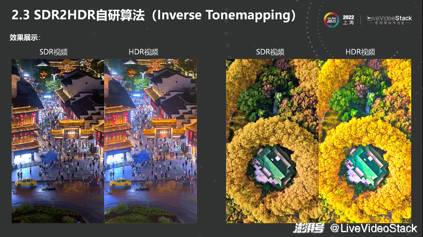 为什么要做SDR转HDR这件事情呢?五六年前,很多手机机型就具备支持HDR显示,但HDR拍摄姗姗来迟,因此业内缺乏HDR视频内容。换句话说,HDR屏幕没有被充分利用。所以我们想做SDR转HDR,以提升视频播放消费体验。