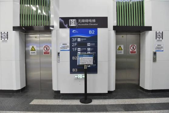 左右两侧扶梯可到达公交、有轨电车乘车处,同时也设有无障碍电梯