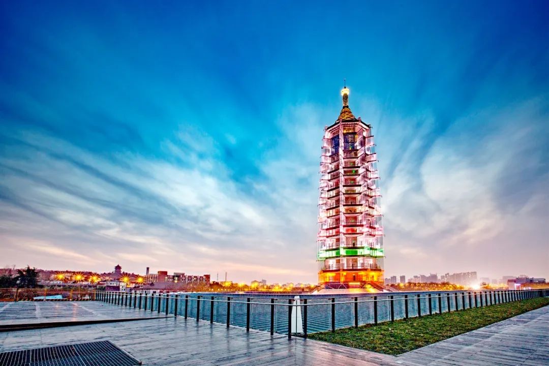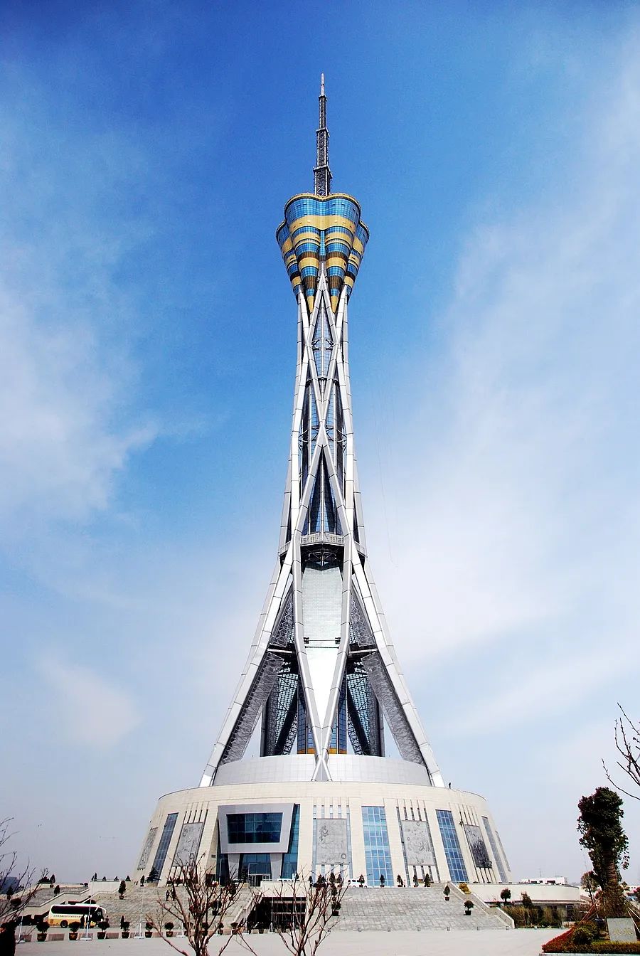 河南省广播电视发射塔项目总建筑面积约5.3万平方米,建筑高度388米,是世界最高的全钢结构电视发射塔,是郑州的标志性建筑之一,被专家称为“现代建筑与艺术的完美结合,是美学元素融入科技设计的一次伟大尝试”,被评为“河南省最美建筑”。