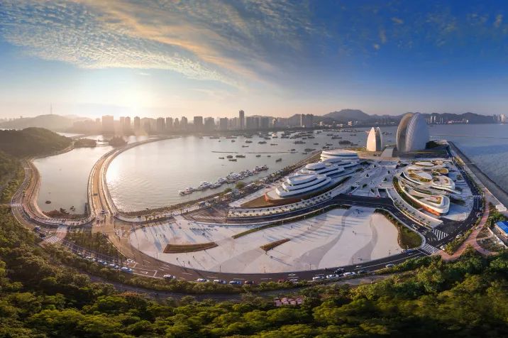 珠海歌剧院位于广东省珠海市情侣路野狸岛,集文化艺术、地标景观、休闲旅游功能于一体,是粤港澳大湾区珠海城市地标文化建筑。大剧院建筑外形似“日月双贝”,可容纳1600个观众,是我国第一座建在海岛上的剧院。