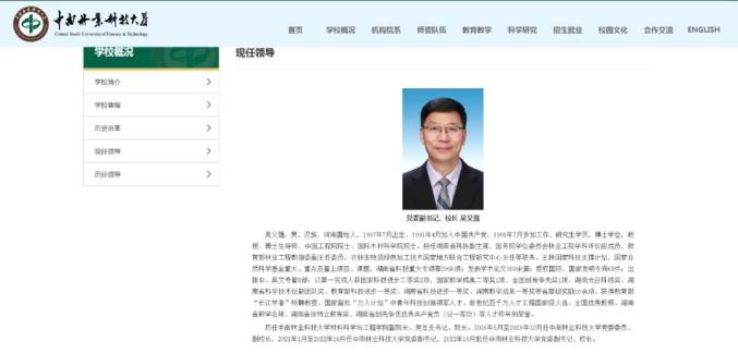 中南林业科技大学官网“现任领导”一栏最新信息显示,吴义强已任中南林业科技大学校长。