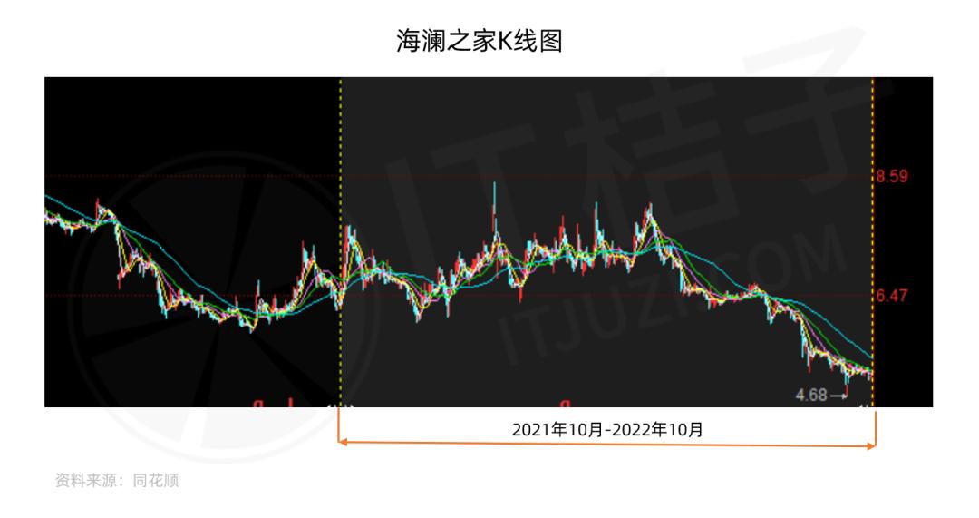 2018 年腾讯入股海澜之家,持股比例为 5.52%,2021 年 10 月,腾讯对海澜之家进行减持,持股比例降至 4.99%。根据规定,股东持股降低至 5% 以下则意味着退出大股东行列,之后再进行减持,一般无需进行信息披露,2022 年 5 月,在关于「腾讯是否是海澜之家股东」这一问题,相关负责人并未从正面回答。腾讯是否还持有海澜之家股票未可知,但自腾讯减持后,海澜之家股票便持续下跌,如上图所示。