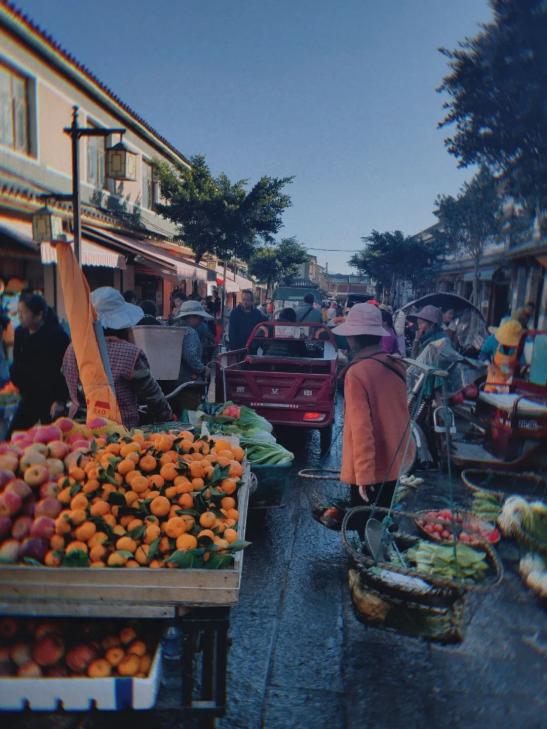 现代化浪潮中,大理本地的乡土文化在商业化的冲击下依旧坚挺,仍在乡土社会里仍在盘根错节地扎根。而赶集,作为有着千年历史的传统,自然也在这种氛围中保留了下来。