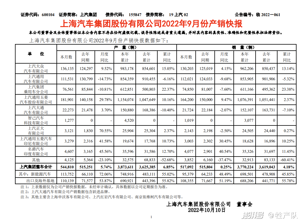 从海外出口销量排行榜来看,上汽集团位居第一位,1-9月累计出口61万辆。其中8月和9月,上汽集团单月出口量均破10万辆,遥遥领先于中国其他车企。队长预计,上汽集团在今年的累计出口量很有可能突破100万辆。