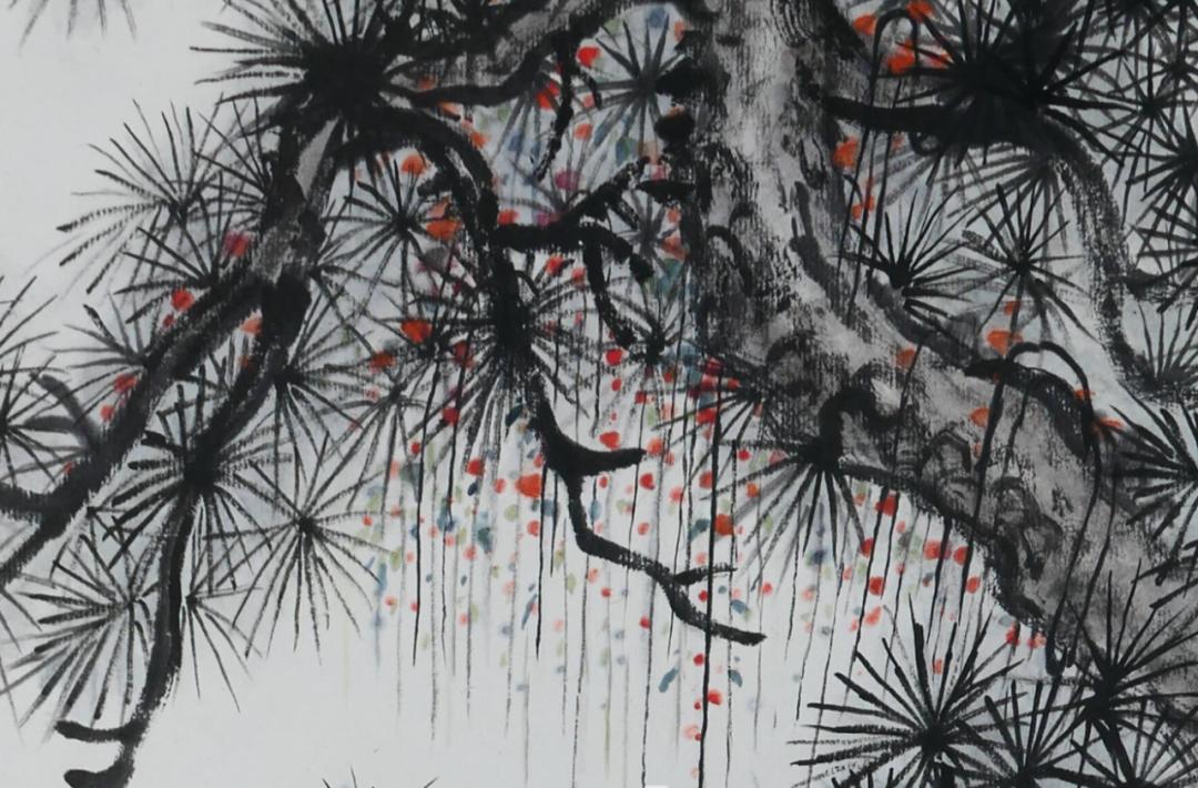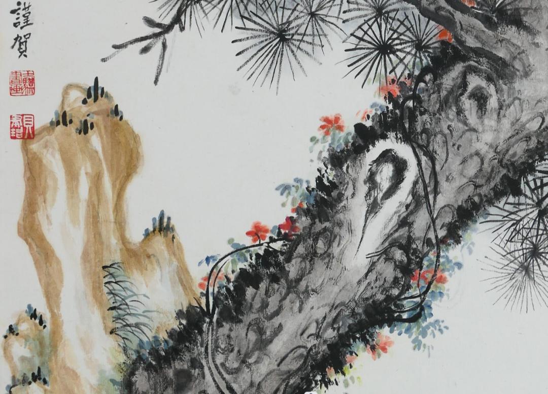 许士骐 贝聿玿 绘《苍松寿石图》细节共赏