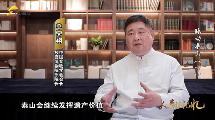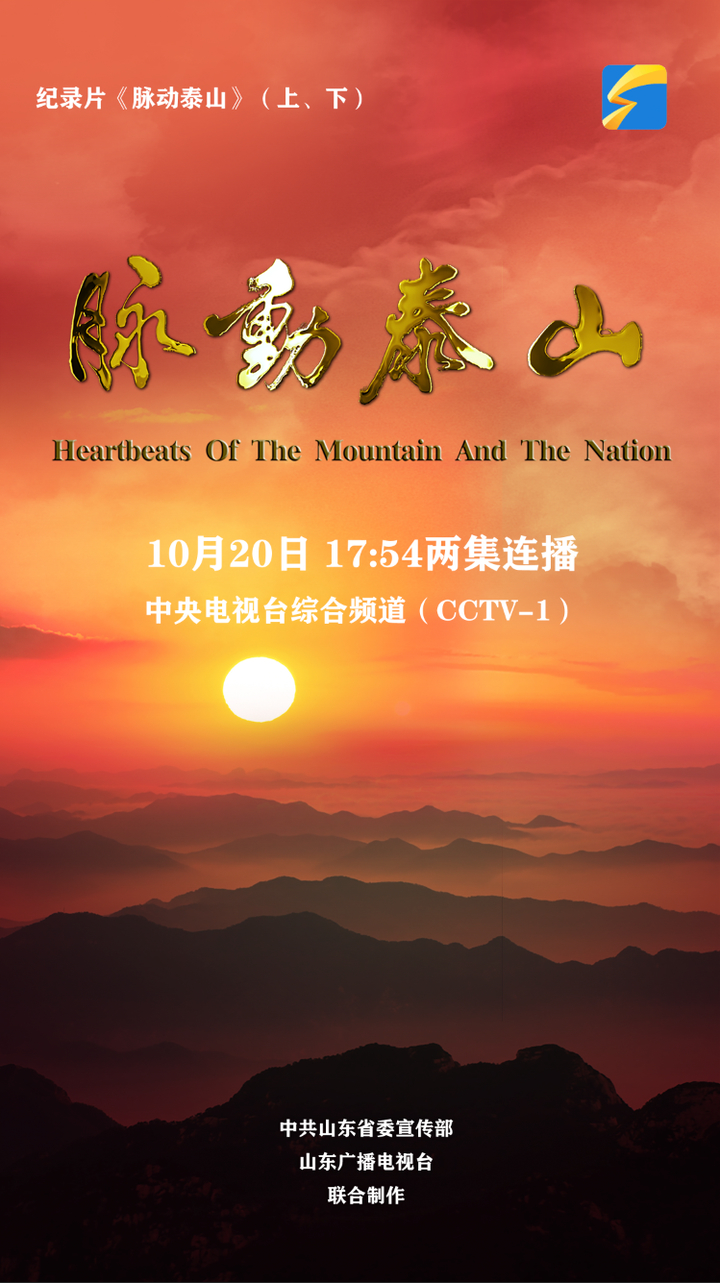 在中宣部和山东省委宣传部统一部署、领导下,由中央广播电视总台华语环球节目中心和山东广播电视台联合摄制的电视外宣纪录片《人类的记忆——中国的世界遗产》系列节目《脉动泰山》(上、下集)10月20日将在央视综合频道播出。纪录片以“脉动泰山”为题,以“脉动”“续脉”为主线,立足今天,回望历史,展望未来,融通中外,讲述河山元脉与人物续脉的故事。