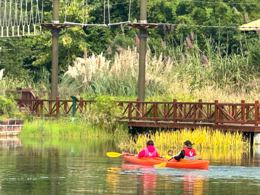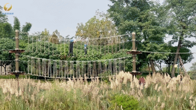 除了可以欣赏优美的环境,这里还有一个极趣探索主题乐园。在这里,大朋友、小朋友都可以在空中开启他们的冒险之旅。据介绍,该探索主题乐园贯穿整个园区,大人孩子都可以穿上装备,选择不同难度的线路挑战自己。