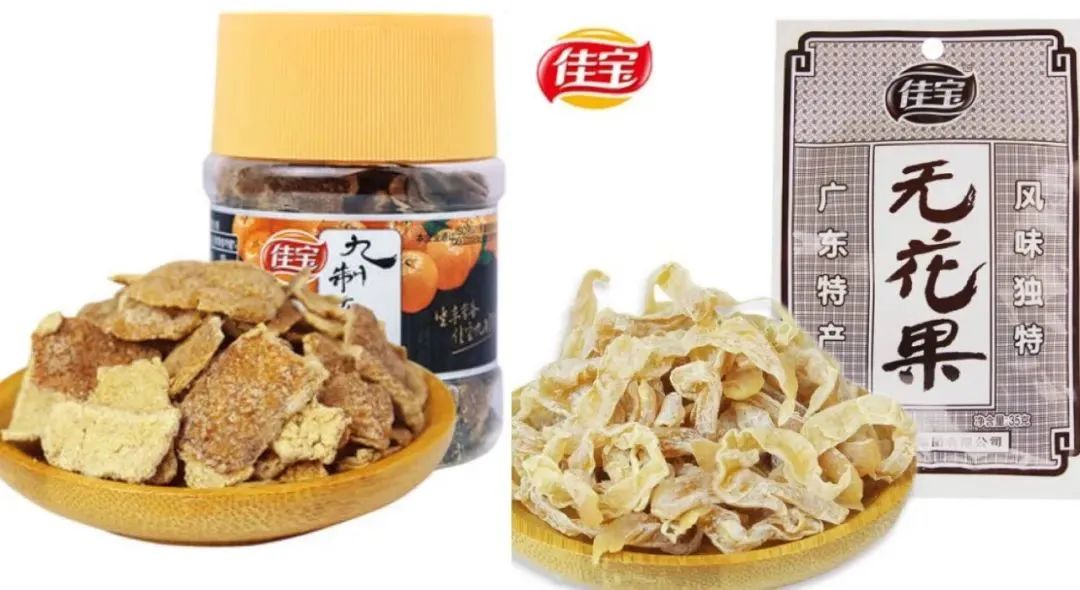 1937年,庵埠当地凉果生产的小作坊已经有10多家,年产200多吨,甚至远销海外。1978年改革开放之后,庵埠人大力发展传统手艺,诞生了许多知名品牌,这之中就有我们所熟知的主打九制陈皮的佳宝、做华华丹的康辉……
